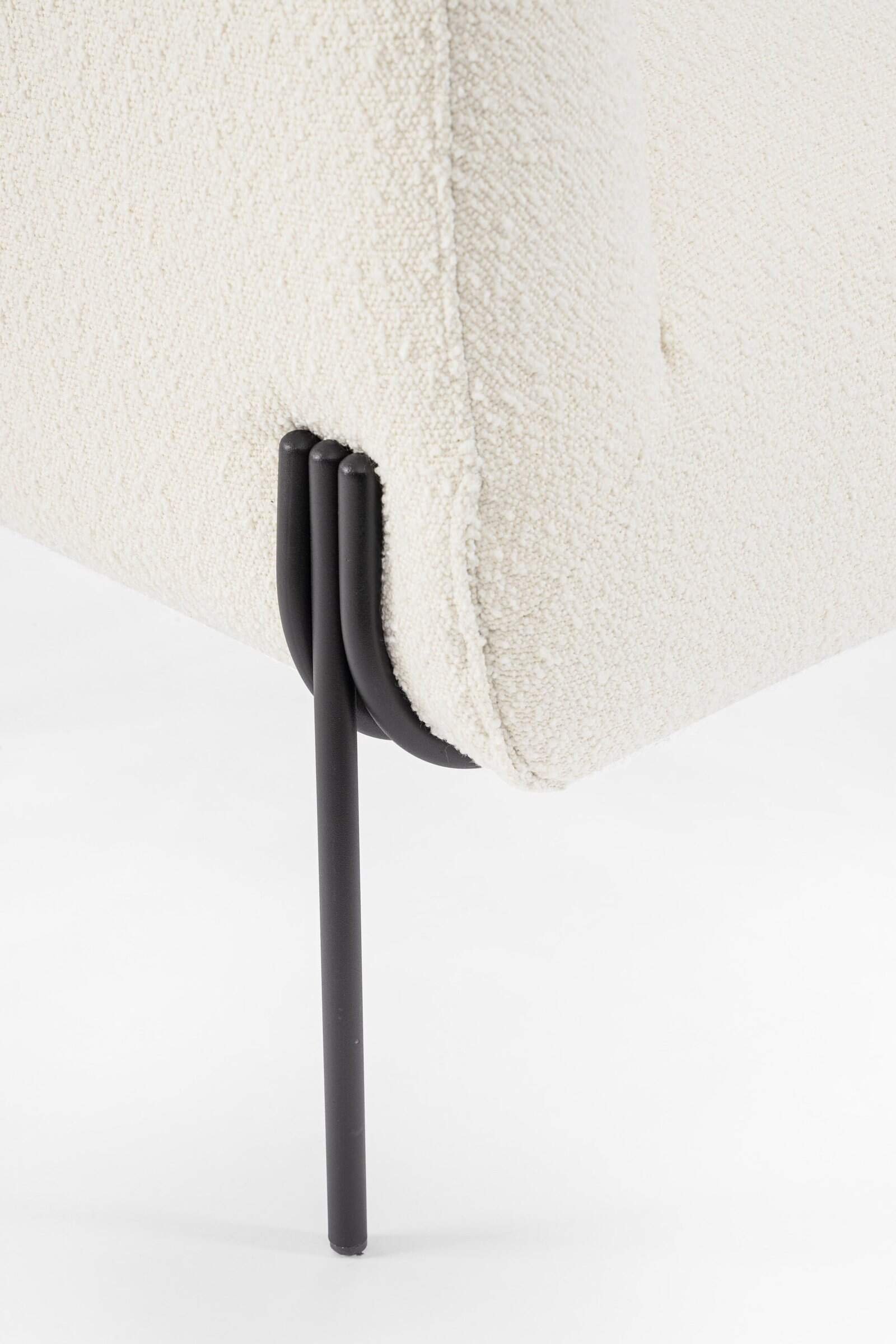 STRUTTURA IN LEGNO COMPENSATO, GAMBE IN ACCIAIO VERNICIATO A POLVERE EPOSSIDICA. RIVESTIMENTO IN POLIESTERE EFFETTO BOUCLE’. DENSITA’ IMBOTTITURA SEDUTA 28KG/M3 SCHIENALE 20KG/M3. NON SFODERABILE. GAMBE DA ASSEMBLARE.