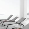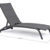 STRUTTURA IN ALLUMINIO, VERNICIATO A POLVERE (POLIESTERE). RIVESTIMENTO IN TEXTILENE 2X1 (CON IMBOTTITURA). SCHIENALE RECLINABILE IN 5 POSIZIONI. RUOTE IN PLASTICA. VITERIA IN ACCIAIO INOSSIDABILE. IMBALLO SENZA CARTONE.