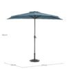 STRUTTURA VERNICIATA A POLVERE (POLIESTERE). PALO IN ALLUMINIO Ø36/38MM. 5 STECCHE IN ACCIAIO TRATTATO PER ESTERNO TRAMITE FOSFATAZIONE 12x18MM. TELO IN POLIESTERE COLOR CLOUD 160GR/M2 CON CAMINO ANTIVENTO. BASE NON INCLUSA