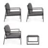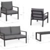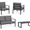 struttura in alluminio, verniciato a polvere (poliestere). seduta in textilene 2×1. cuscini sfoderabili con tessuto idrorepellente spun poly (poliestere).viteria in acciaio inossidabile. da assemblare.